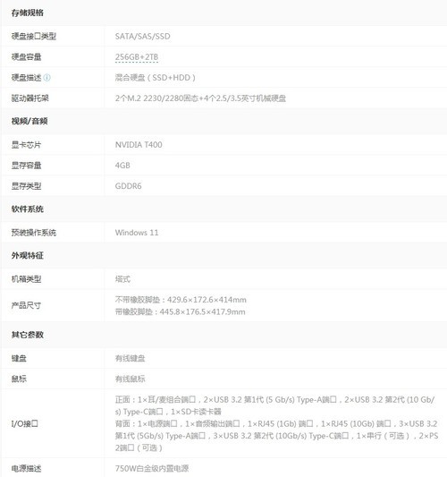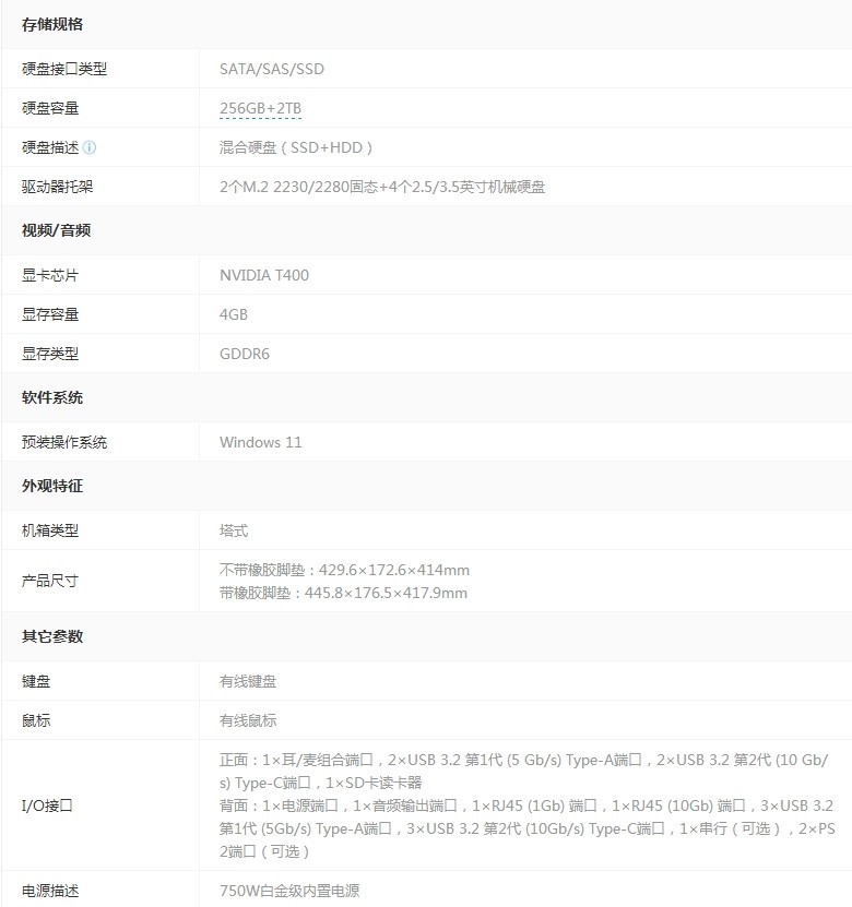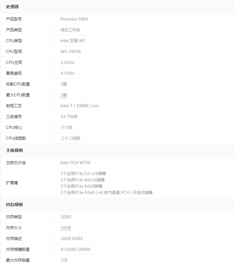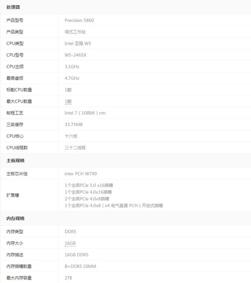 戴尔Precision 5860(W5-2465X/16GB/256GB+2TB/T400)工作站