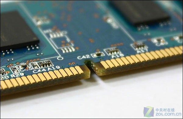 我们把内存与主板相连接的地方称作“金手指”,其最大的作用就是传送内存与主板之间的所有信号,从这点就能看出“金手指”的重要性。“金手指”实际上是在覆铜板上通过特殊工艺再覆上一层金。大家知道金的抗氧化性极强,而且传导性也很强,“金手指”上镀金的厚度越大,内存的兼容性就越出色。由此可见,“金手指”的优劣直接影响着内存的兼容性甚至是稳定性。