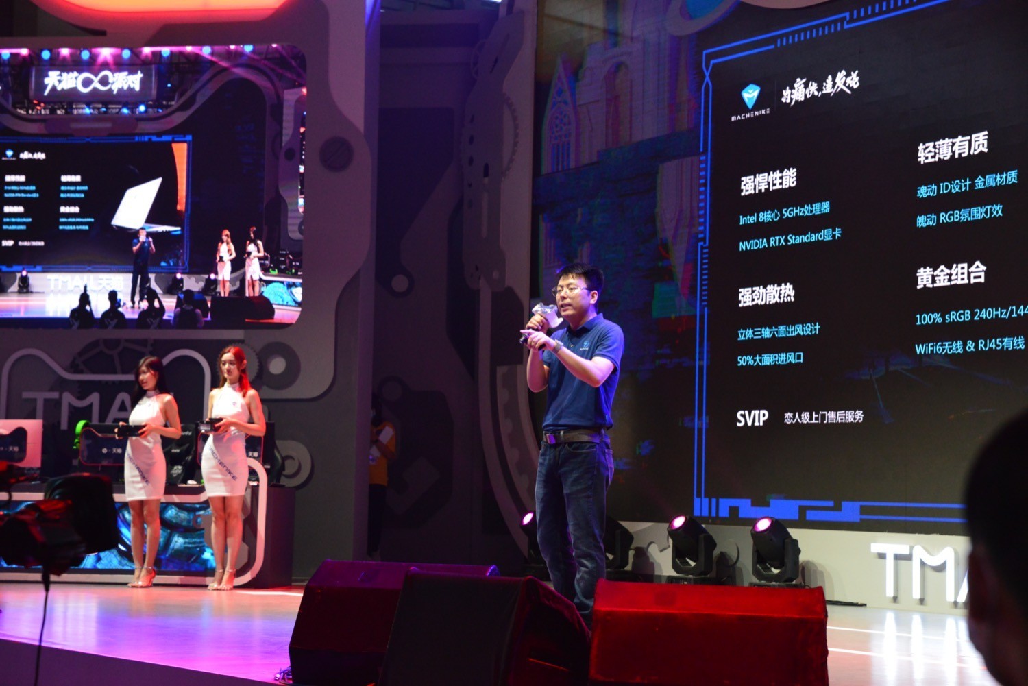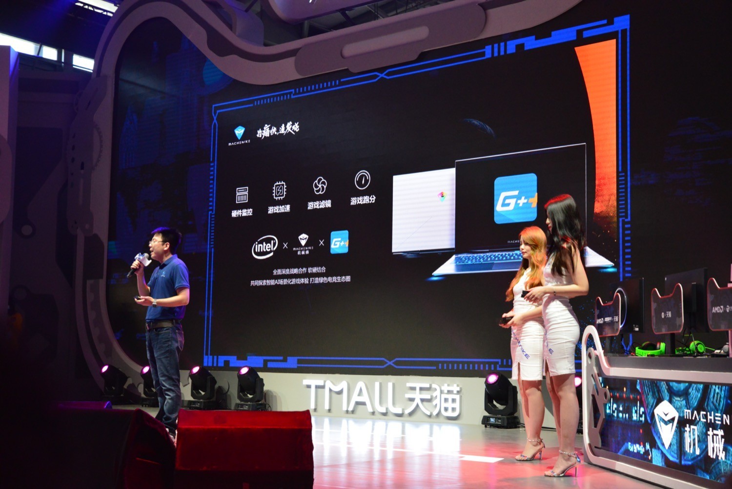 今年天猫展台机械师笔记本区域涵盖了机械师F117系列的多款电竞笔记本以及电竞周边产品,这几年机械师主打新国货,坚持做学生买得起的电竞游戏笔记本,并且主打高性能,低价格,与一线国际品牌相比,机械师电竞游戏笔记本非常有竞争力,并且产品模具的研发速度之快,另消费者惊叹。