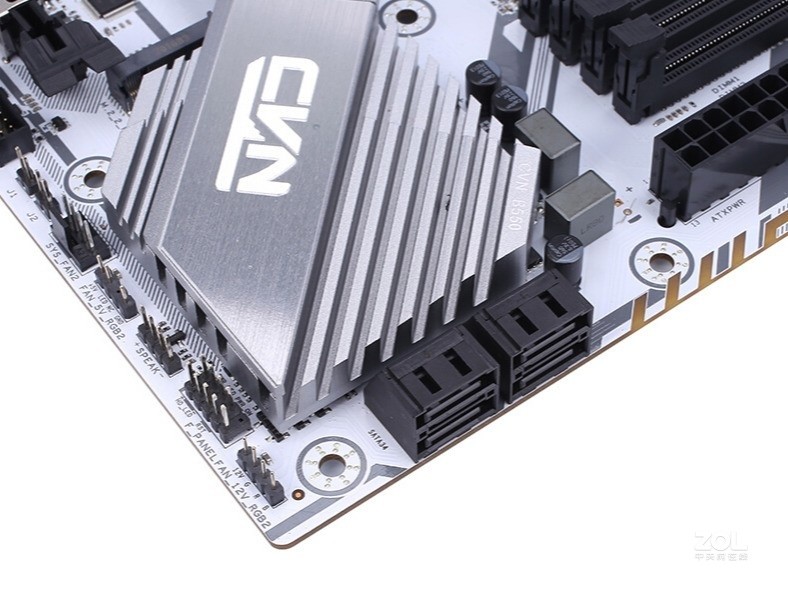 七彩虹CVN B550M GAMING FROZEN V14主板延续了之前特色设计,在散热上做了升级,使用了寒霜冷凝散热装甲,在主板发热源MOS管以及M.2上面都准备了导热性强的金属散热片,散热垫下面还有使用高导热硅胶片,保证MOS管的温度以及供电的稳定。