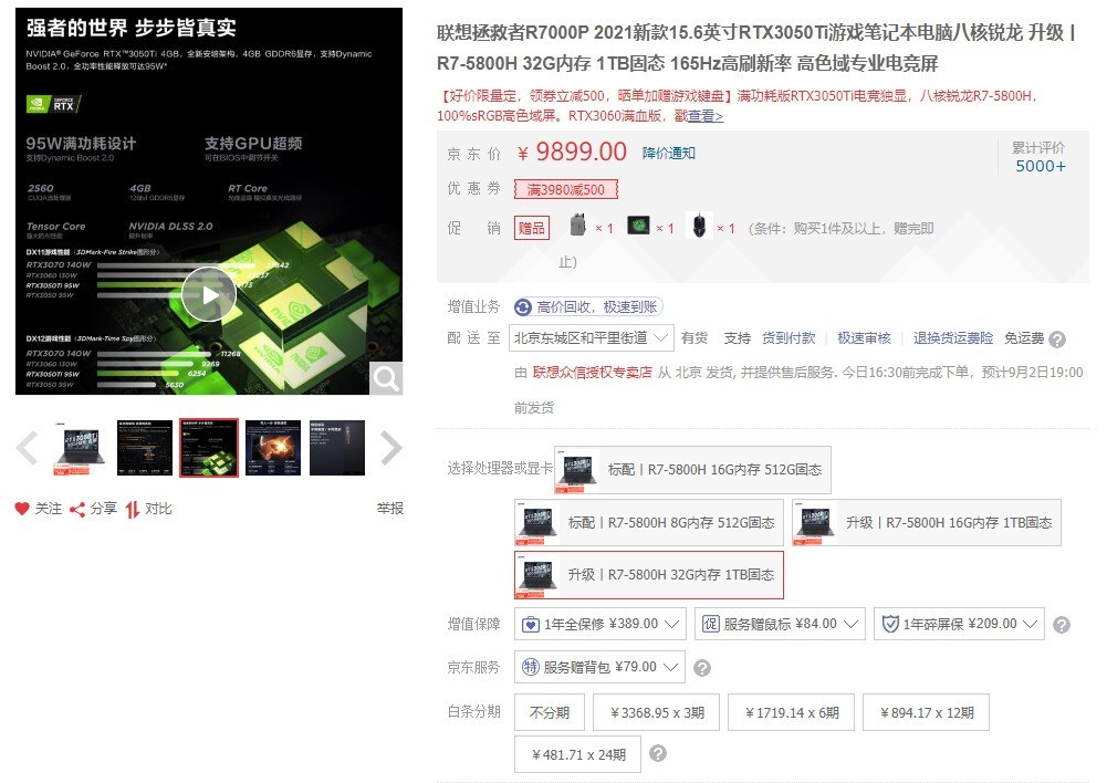 联想拯救者R7000P 2021新款 京东售价:9899元