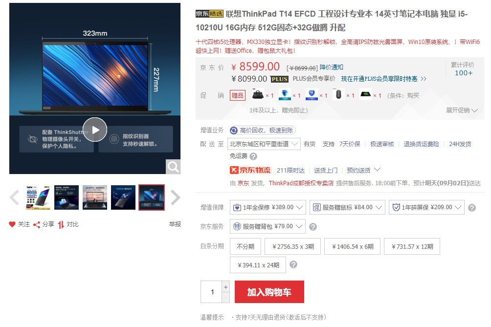 联想ThinkPad T14 京东售价:8099元