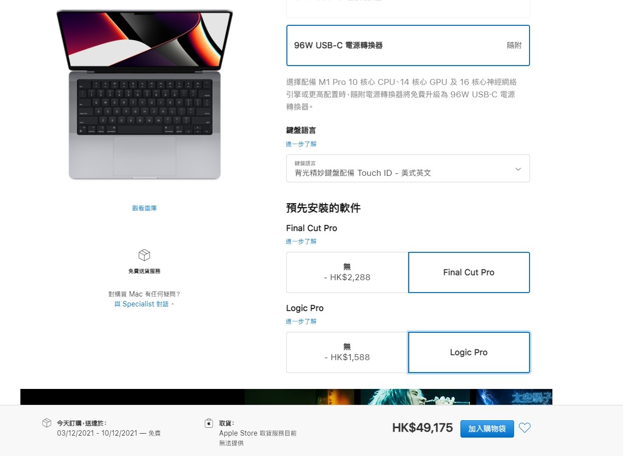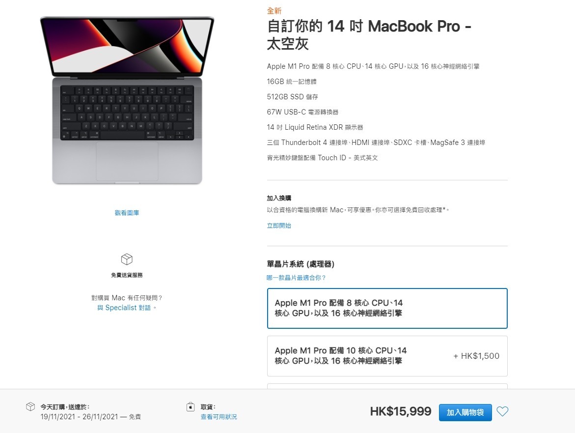 港版的具体价格为,14英寸基础版售价15999元,折合人民币13130元;14英寸基础满级版本的售价为49175元,折合人民币40357元;16英寸基础版售价为27299元,折合人民币22409元;16英寸顶配满级版售价为50675元 ,折合人民币41599元。