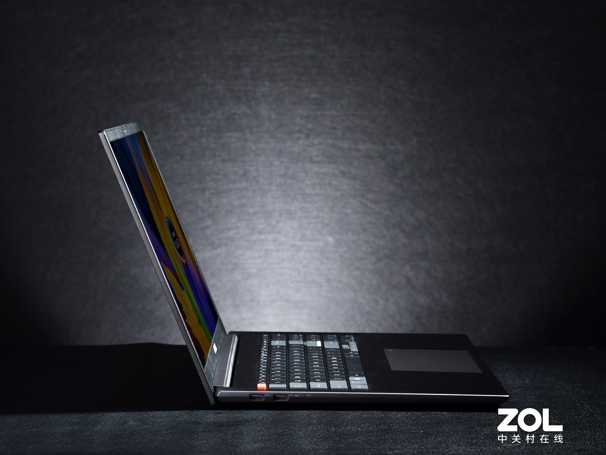 有一个创新细节值得介绍:灵耀Pro16还在触控板上首次引入了DialPad虚拟旋钮,与触控板相结合,只需简单的手势轻松唤醒,就可进行多样化的交互性操作,减少创作办公过程中鼠标过多的、且单调的点击和拖拽等操作,从而提高创作的体验与效率。