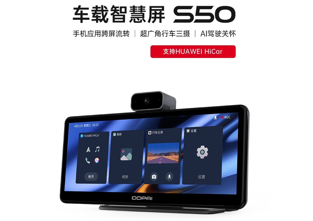 盯盯拍车载智慧屏已经推出S50产品,相比初代S5,它的功能更强大,尤其是和华为智能手机的跨屏流转,通畅不滞涩。