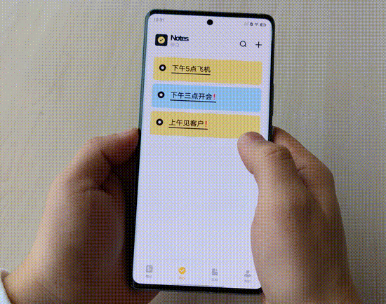 此外,vivo还对交互进行了升级,在添加待办事项后,手指在词条上向左滑动,可以更换词条底色以及设定时间。当一件事完成后,我们也可以直接向右滑动直接删除该事项,操作体验十分轻量化。
