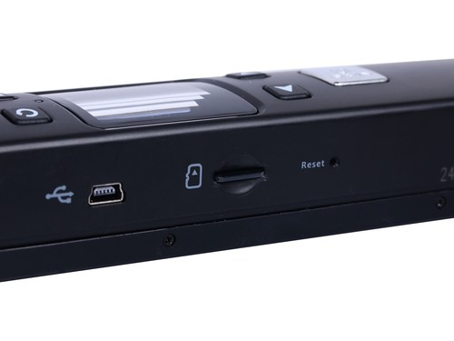 设计上很简洁,彩色液晶屏和按键实现扫描、设置功能。机身侧面有MiniUSB接口和MicroSD卡接口,用于存储和传输扫描数据。内嵌的Reset键则实现恢复出厂设置功能。