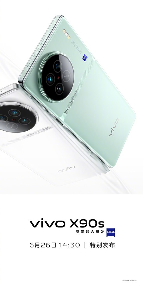 vivo X90s即将“特别”亮相,全新夏日配色,青漾登场,vivo质感色彩,一镜入夏,6月26日14:30,特别发布。