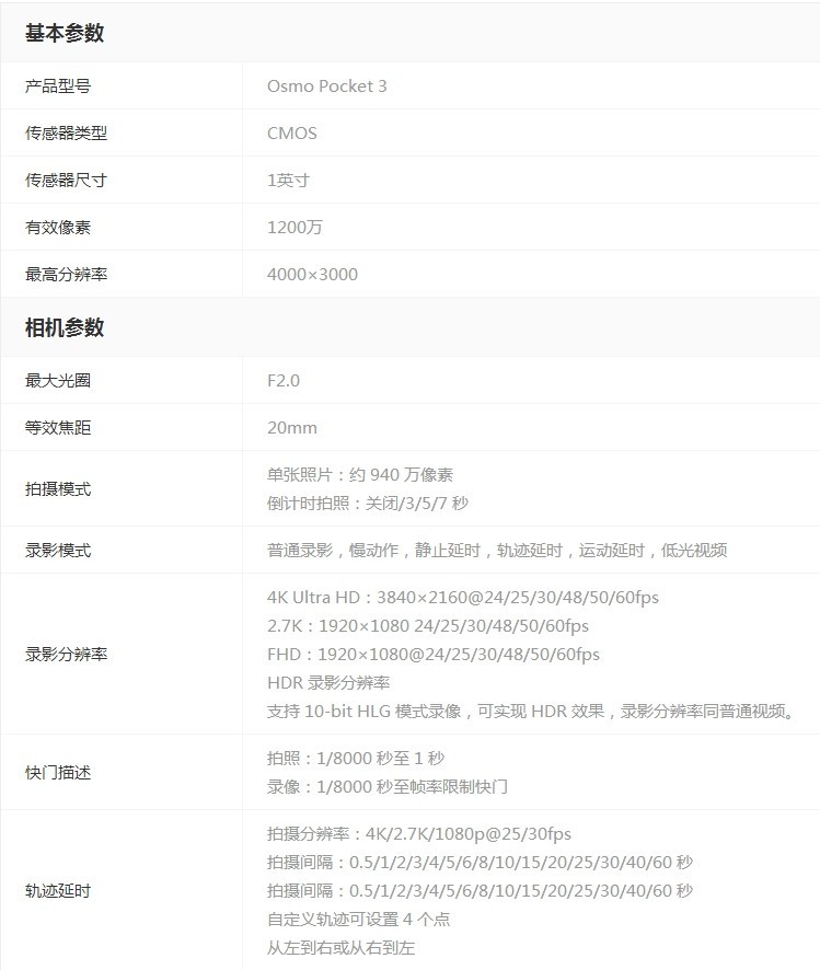 大疆Osmo Pocket 3 标准版口袋相机