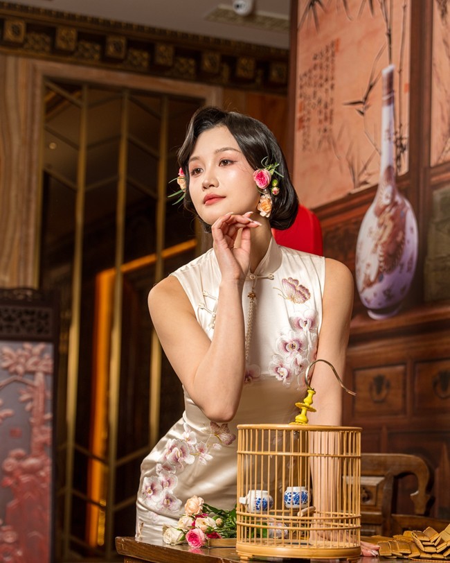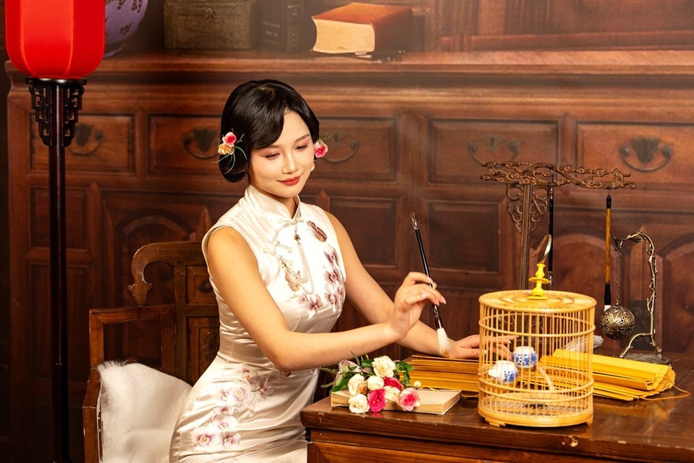 旧时光里的温柔,刻在骨子里的东方韵味,素旗袍簪花,红灯笼,旧木桌,今日份民国旧梦存档。