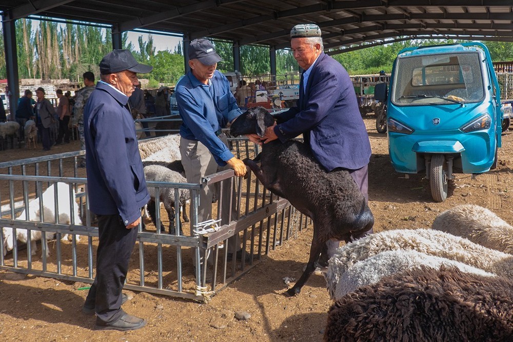 喀什牛羊大巴扎是南疆乃至亚洲最大的活牲畜交易市场,以原始粗犷的交易方式和丰富的民俗文化闻名。主要交易牛羊、骆驼、骡子,其中羊群占比最高。交易时买卖双方通过拍打牲畜和计算器传递价格,交易后当场完成现金与牲畜交换。
