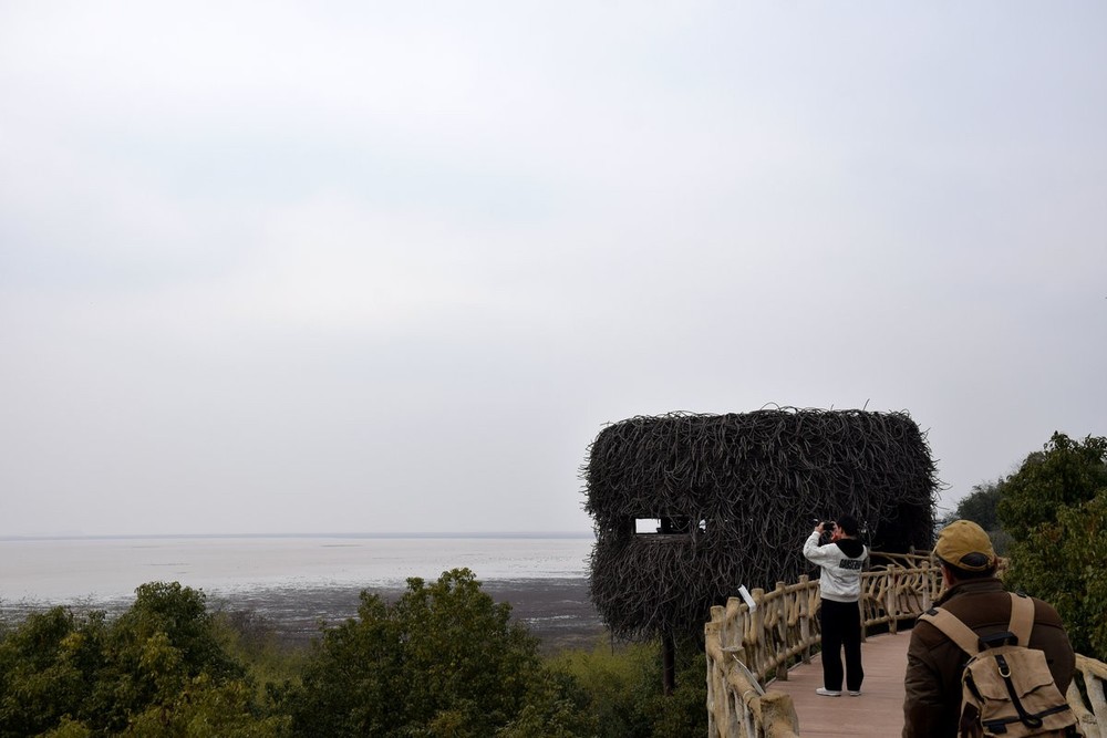继续在大湖池观鸟,大湖池观鸟点的设计体现了生态保护与人文体验的巧妙融合。观鸟栈道引导人们深入湿地,却又最大限度地减少对栖息地的干扰。这里没有夸张的喧闹,只有与自然最直接的对话:脚下是木板轻响,耳畔是风拂芦苇的沙沙声,远处传来清亮的鸟鸣。这种沉浸式体验,让观鸟不仅是视觉的享受,更是心灵的涤荡,让人在候鸟年复一年的史诗般迁徙中,感受到生命的韧性与自然的神圣。。。