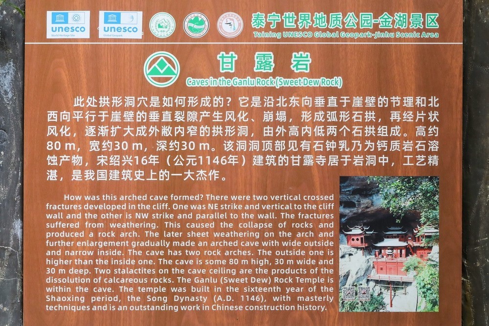 这儿的的甘露寺巧妙池建于山体结构裂隙中,用单根立桂支撑起寺庙建筑的大梁。使整座寺庙有了“悬空”之感。