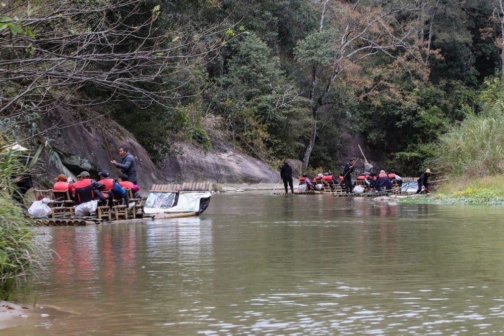 与大金湖周边的山一样,大清渓也曲曲弯弯的在丹崖山中穿行。溪水时而成潭深不可测,时而成滩芦花摇曳。
