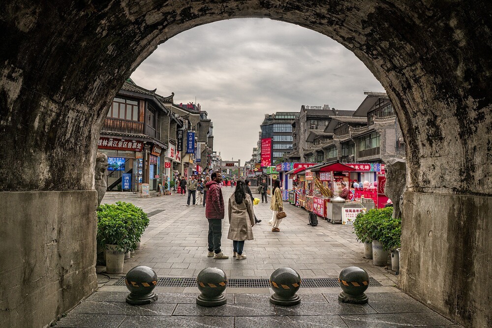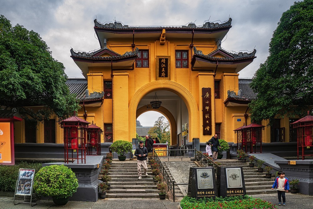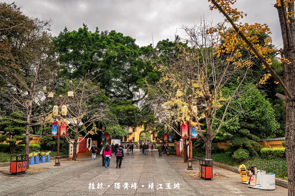 1954年改为广西师范大学校区,现存城墙高7.92米,辟端礼、广智、体仁、遵义四门,独秀峰存有玄武阁等。