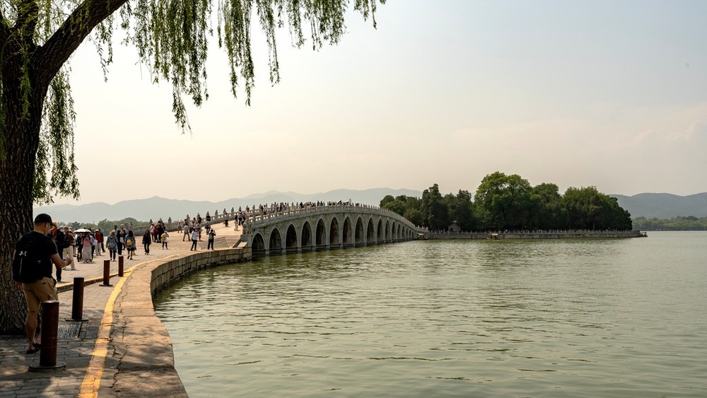 颐和园--是北京西郊那座 “把江南灵秀搬进宫” 的皇家园林,既是世界文化遗产,也是中国古典园林艺术的巅峰之作 —— 整座园子占地 290 公顷,它最早是乾隆为母亲祝寿修的 “清漪园”,后来被英法联军焚毁大半,慈禧挪用海军经费重建后改名 “颐和园”。所以园子里既有江南水乡的柔媚,也藏着晚清的历史余味。坐小船飘在水面上,远处佛香阁的金顶被阳光晒得发亮,十七孔桥的桥洞串着光,爬几十级台阶站到阁上,整个园子铺成一幅画 —— 昆明湖像碎了星光的玉,远处西山淡得像墨痕,连北京的高楼都缩成小点点,风裹着山草味往衣领里钻,突然懂了 “俯瞰天下” 的松弛,桥栏上 500 多只石狮子没重样的,有的歪头眯眼,有的踩球耍帅,蹲下来跟它们对视,总觉得这些石头家伙也看过好多年的日落与游船,怪憨趣的。