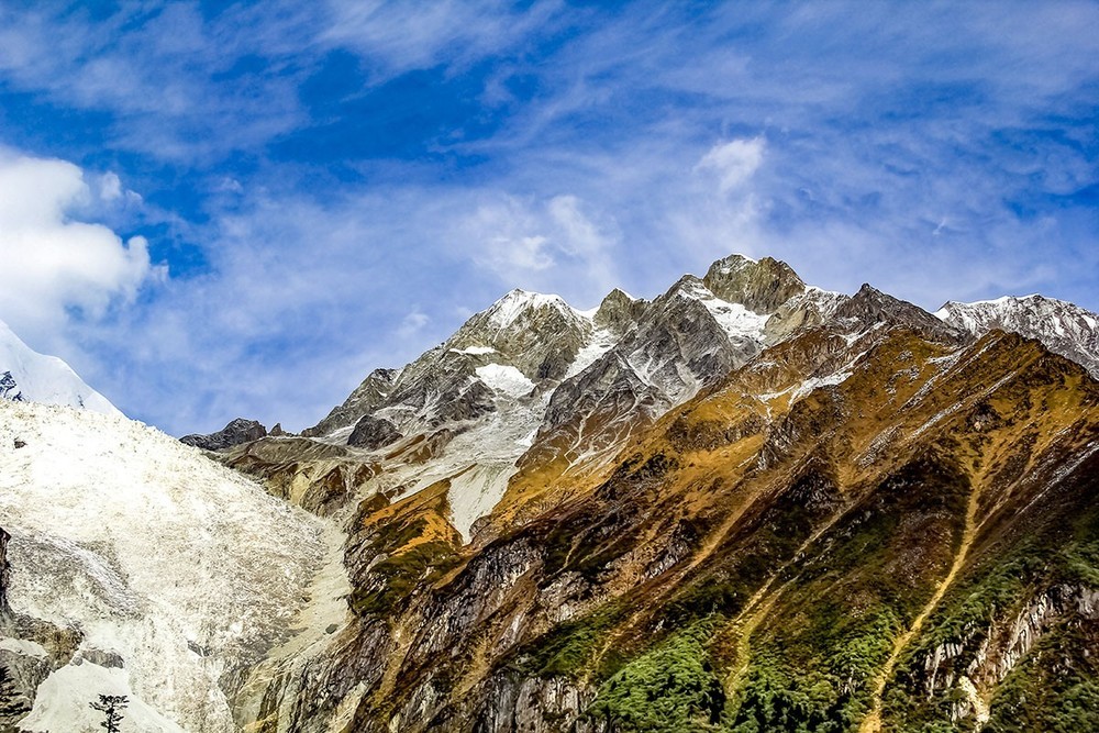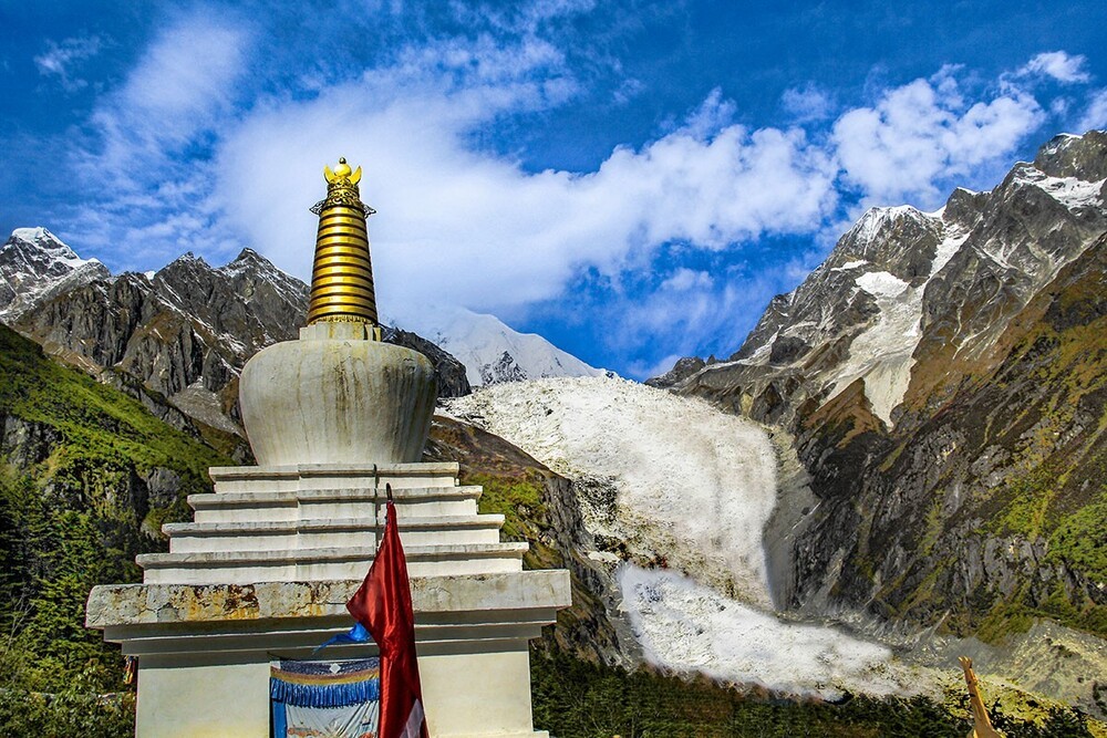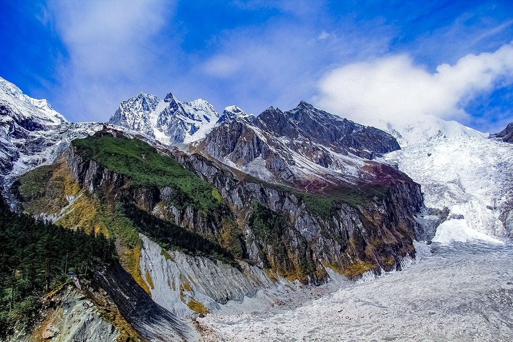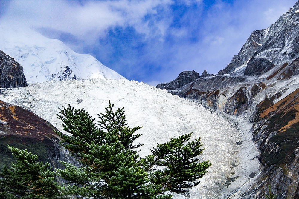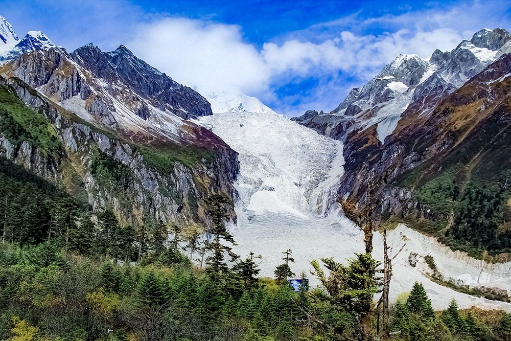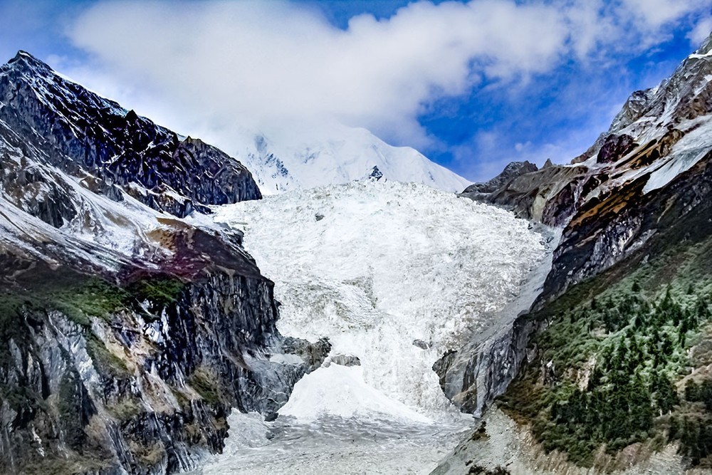 贡嘎山地区是现代冰川发育较完整的区域。??研究表明,1990年至2020年间贡嘎山地区冰川总面积从237.8平方千米减少到206.9平方千米,退缩了12.9%。其中,东坡的海螺沟冰川,高1080米、宽1100米,为我国最大的冰瀑布。区域内发育有71条现代冰川,