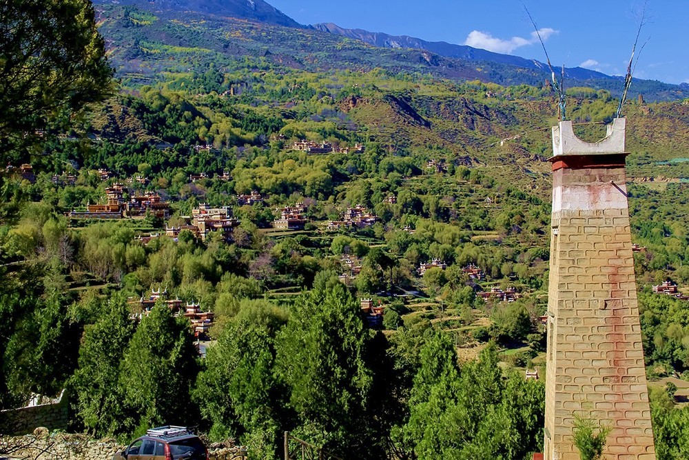 甲居藏寨位于四川甘孜州丹巴县境内,距县城约8公里,是丹巴最具特色的旅游景区。2016年9月,正式获批成为国家4A级旅游景区。“甲居”,藏语是百户人家之意。藏寨从大金河谷层层向上攀缘,一直伸延到卡帕玛群峰脚下,整个山寨依着起伏的山势迤逦连绵,分布在相对高差近千米的山坡上。