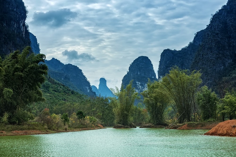 景区地处喀斯特峰林地貌发育成熟区域,群峰俊秀挺拔,水系环绕荷塘,