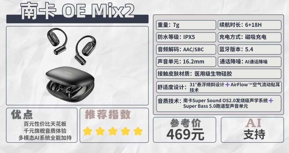 开放式耳机推荐1.南卡OE Mix2