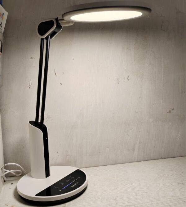 儿童护眼灯什么牌子性价比高?良亮4308护眼台灯整体设计简洁大方,呈现出一种沉稳而不失美观的气质。底座坚实可靠,为台灯提供了稳固的支撑,给人以扎实耐用之感。此外发光面上采用圆形灯面,搭配可灵活调节的灯杆与灯头,具备强大的灵活性,能够支持 150° 在任意方向上旋转,20厘米直径的发光面,在通电后能够照亮一张1.8米的书桌,确保使用者拥有充足且适宜的照明范围。