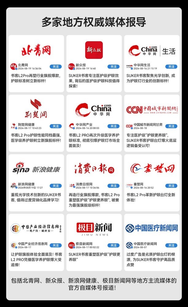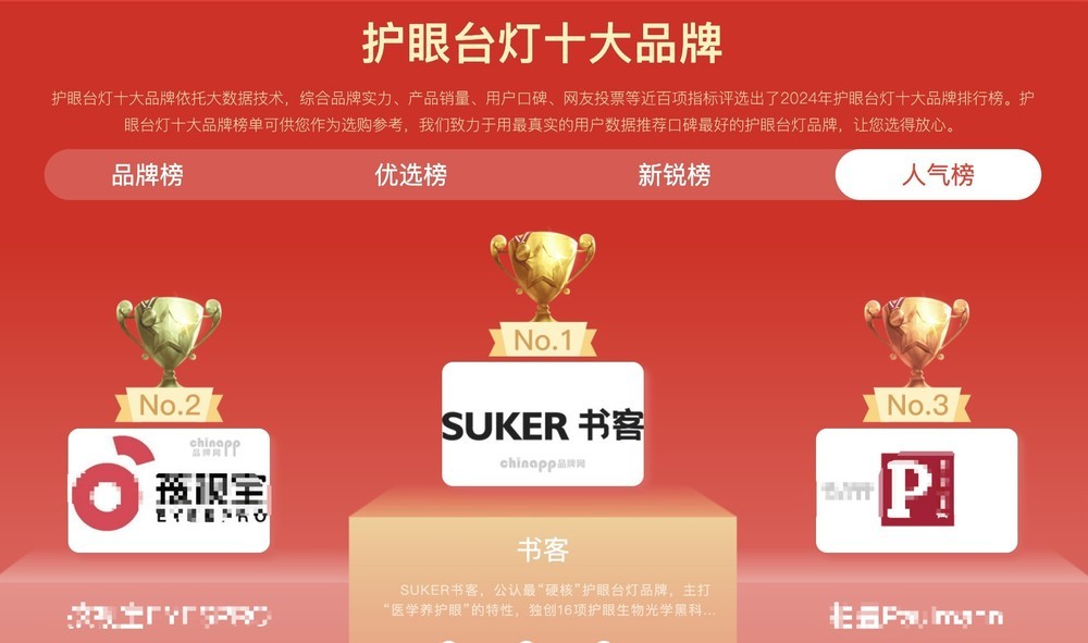 为做到医护级养护眼,suker书客去除多余功能和型号,专注在一款产品上死磕多年,升级数十次,优化了200多个性能细节,使得光照亮度、蓝光危害、柔和度、稳定性都远超竞品友商!他们独创16大生物光学科技,包含RRT2.0红光养眼技术、第三代SDIT自适应调光技术、自然光生物算法和DT多维漫射2.0技术,产品的稳定性和护眼精准度达到了旗舰级产品水准,实现99.8%还原自然光,提升89%柔和度同时做到“对眼睛0伤害”和降低96%近视风险的护眼效果,是首个实现医学养护眼效果,打造了多项养眼数据标杆!这一创新技术,在整个行业都是极其罕见的,受到科技媒体高度好评,称它是“护眼台灯的巅峰存在,遥遥领先对手一代”!