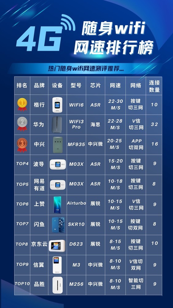 面对市面上五花八门的设备,如何挑选性能与性价比兼具的产品?根据综合实测数据,揭晓2025年4G随身WiFi网速十大排行榜,助你告别“龟速网络”,随时随地畅享极速冲浪!