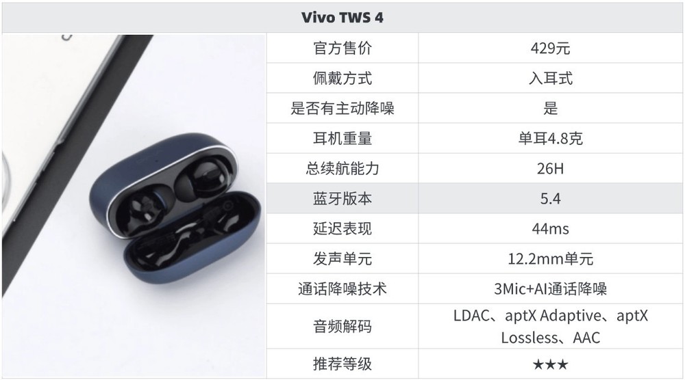 10大性价比超级高的蓝牙耳机推荐2、V ivo TWS 4蓝牙耳机