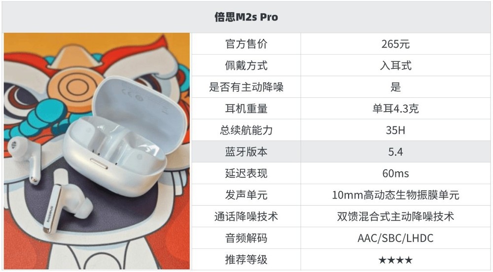 10大性价比超级高的蓝牙耳机推荐5、倍 思M 2s Pro蓝牙耳机