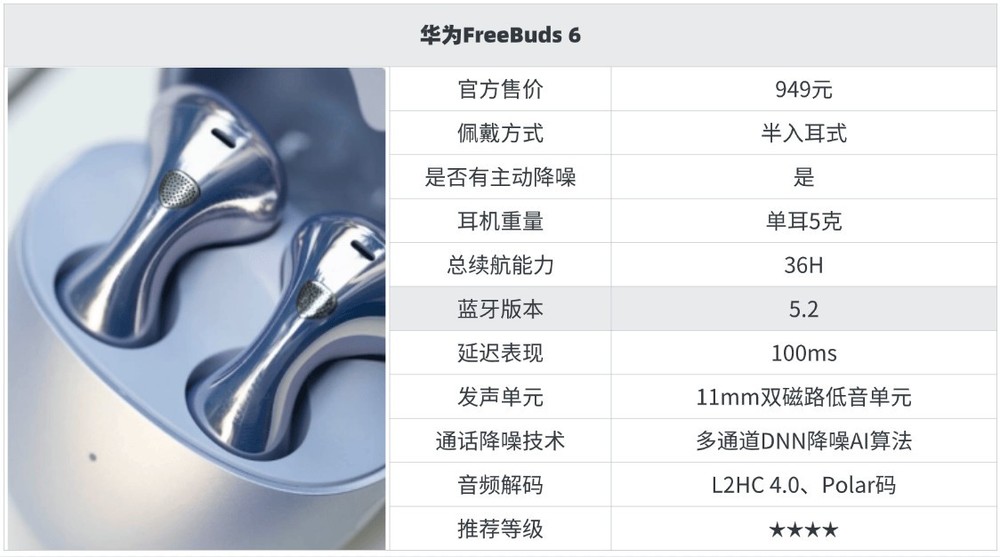 10大性价比超级高的蓝牙耳机推荐7、华 为F reeBuds 6蓝牙耳机