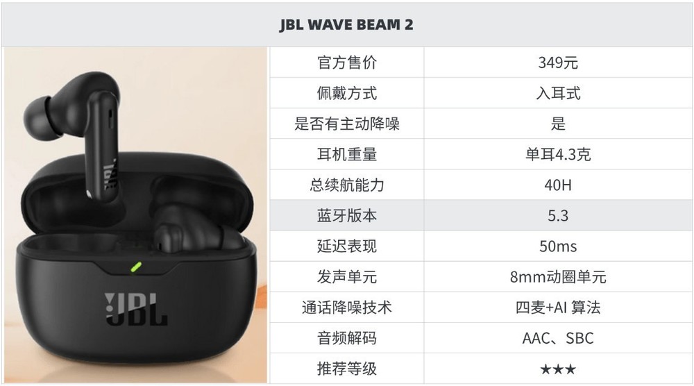 10大性价比超级高的蓝牙耳机推荐9、J BL W AVE BEAM 2蓝牙耳机