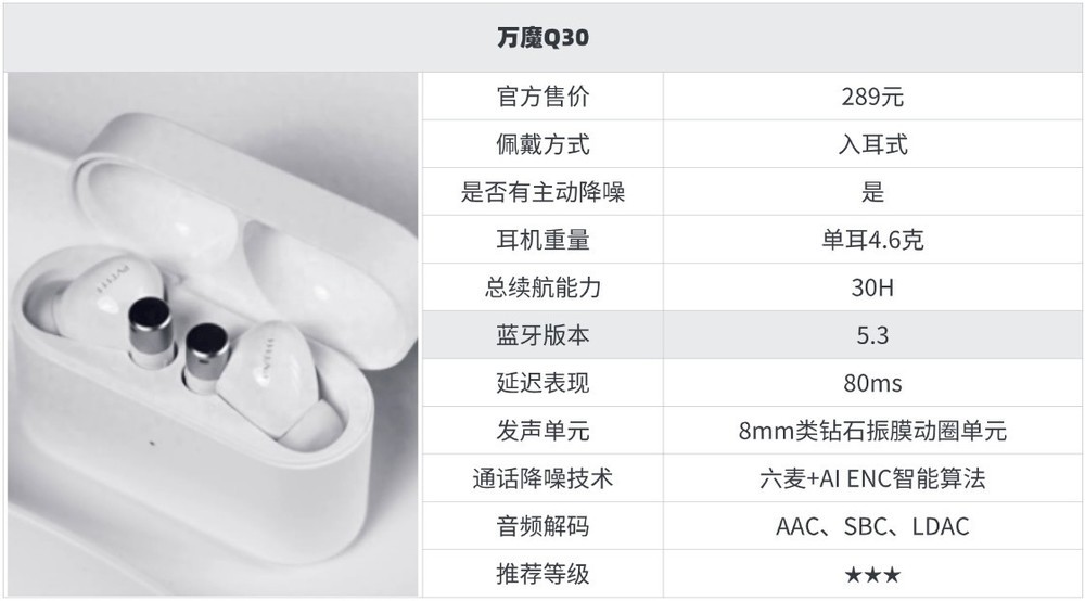 10大性价比超级高的蓝牙耳机推荐8、万 魔Q 30蓝牙耳机