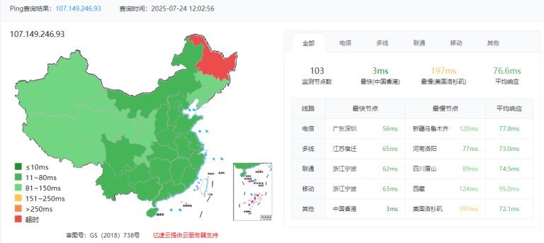 3.3 itdog 国内多点联通 Ping 如下图