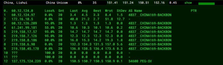 3.6 中国联通回程 MTR 测试 如下图