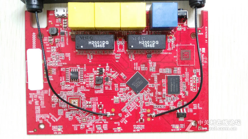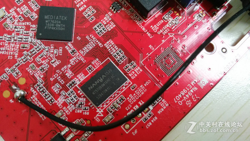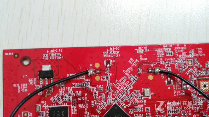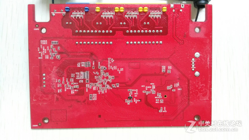 路由器PCB采用的是红色板。背面比较空,基本没有什么原件