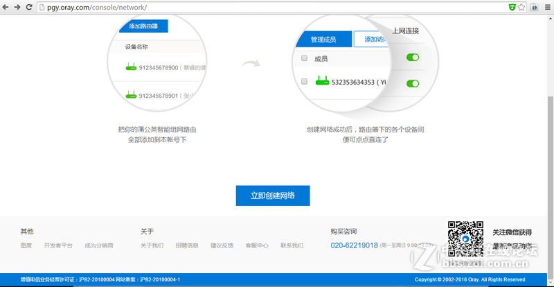 智能组网需要用花生壳的账号登录pgy.oray.com,登陆之后点击组建网络,然后点击左上角的设备列表,通过SN和密码添加路由器