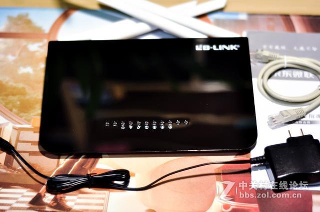 必联BL-D9109这款路由器在背部提供了一个百兆WAN端口,四个百兆LAN端口,一个电源接口和一个重置键,它们全部放置于主机的后侧。