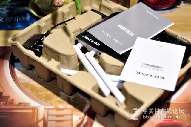 打开包装,在包装防护上做得比较踏实,虽然外包装已经被快递公司蹂躏的面目全非了,而里面的配件却毫发无损,这款路由器除了智能路由器主体外,包装清单中还包含了电源适配器 、网线和快速安装手册一本,不过网线的确有点短,不得不吐槽一下。