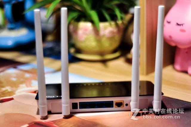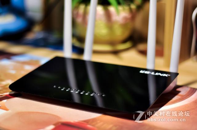 这款路由器将状态指示灯放到了正面,网线端口工作时,指示灯亮起,整体黑色镜面效果配以白色产品标示点缀,大大提升了颜值。