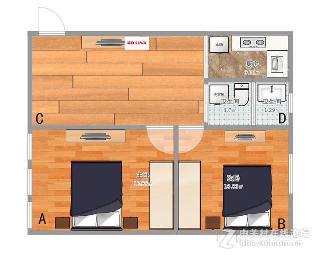 一款路由器的好坏,网络信号的强弱和稳定性自然是判读的唯一标准,为了测试这款路由器的表现,我们选择60平方米的房屋进行了测试,虽然这款路由器能满足200平方米的土豪家庭需求,无赖没有足够的条件,为了方便安放,我们将路由器放在了电视的后面,正面有遮挡。首先我们选择了四个测试点,分别是和路由器在一间屋子的客厅c点、隔了一堵墙的D点,距离大概6米并且隔了一堵墙的A点和最远端拐角的B点,分别在以上几个点位对这款路由器信号强度进行测试。