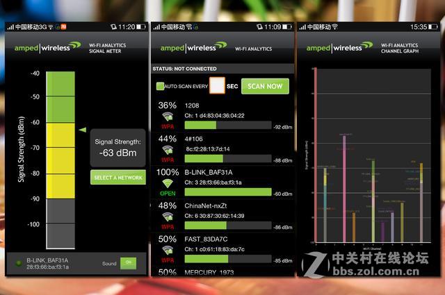 无线终端上选择了大家常用的手机,毕竟在家手机用的最多,软件上我们选择了wi-Fi Analytics这款软件,这款软件不仅可以对所在的环境中的无线网络进行分别比较,还能选择其中任意一个网络,对他的详细信息加以了解。在图上位置除了这款路由器外,还有另外一款路由器也参与了测试,我们具体来看一下详细的数据信息。