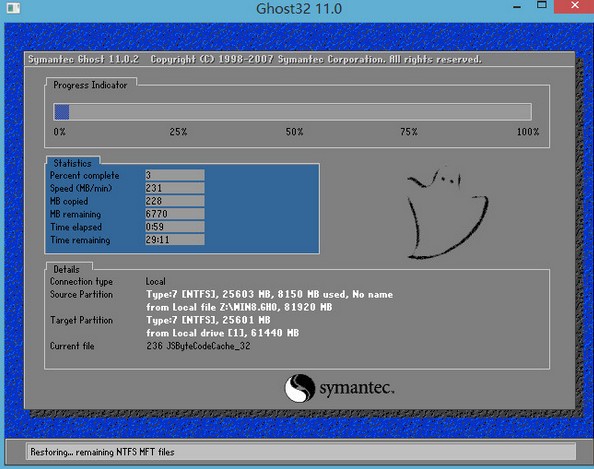 5、电脑会自动重启,然后进行解压和安装过程,等待安装结束即可,如下图所示: