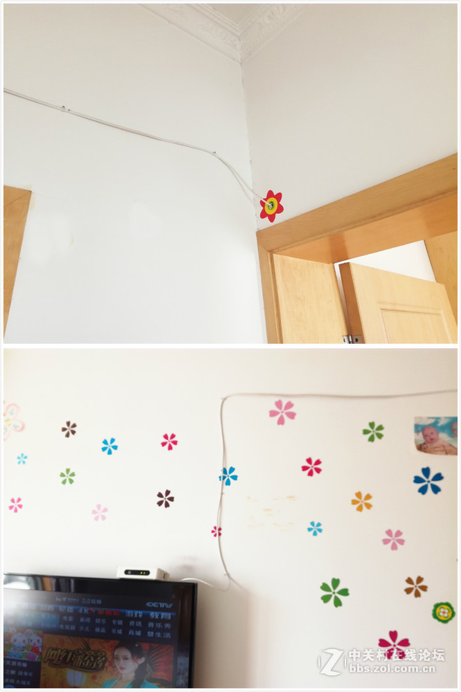 如图,事实证明,明线并不好处理,墙体还被打了洞,非常不美观。