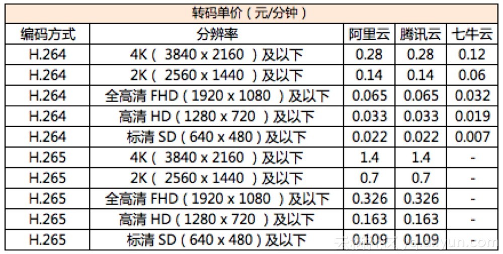 转码速度角度:七牛云>阿里云>腾讯云