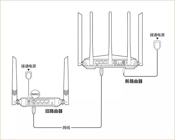2.使用腾达AC7自带的【宽带账号密码迁移功能】,把AC7通电并置于出厂状态(也就是没有设置过的状态),用一根网线将老路由器WAN口连接到AC7的任意LAN口,等1分钟,当AC7的LAN口灯由快闪变为长亮时(持续3秒),表示宽带账号和密码迁移成功。