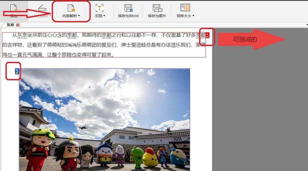 5. 打开PDF图片后点击软件上方的“内容解析”按钮,那么软件就会自动对图片进行内容解析操作。