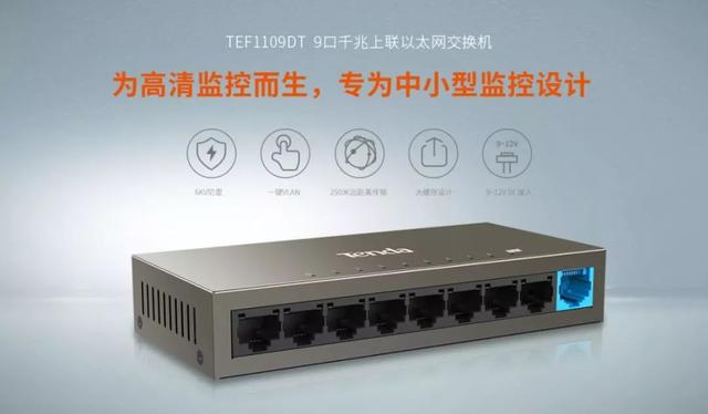 腾达全新上市的监控系列交换机,便是针对100个监控节点以内的小微/中小监控工程领域。同时由于市面上对于8路监控需求日益增长但却少有9口相关产品,为了满足客户们的需求并填补行业市场的空缺,腾达9口千兆上联以太网交换机TEF1109DT应运而生。