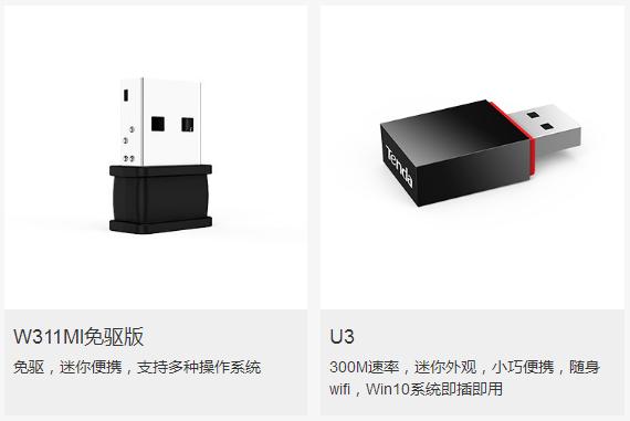 PS:有部分无线网卡支持免驱安装,例如腾达W311MI(免驱版)、U2,这类型的无线网卡插入电脑USB口后可直接使用。