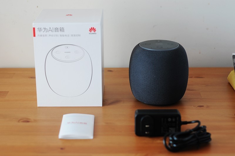 华为AI音箱的包装内容并不是很多,音箱主机、一本快速入门指南和电源适配器构成了其整套产品。电源适配器采用12V 2A的输出,作为区别于其它蓝牙音箱的一个显著特征就是它并没有采用USB端口的设计,原来它并没有内置锂电池,主要定位于家庭、办公环境非移动场景的使用。