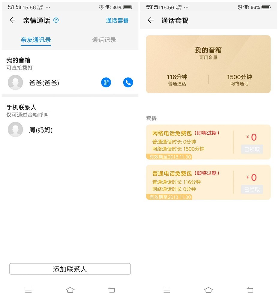 当然笔者对这款智能音箱最感兴趣的还是智能电话功能,华为AI音箱可以通过设置亲友通讯录,实现音箱与联系人的手机进行直接通话,也可以与亲友的华为AI音箱进行网络通话。